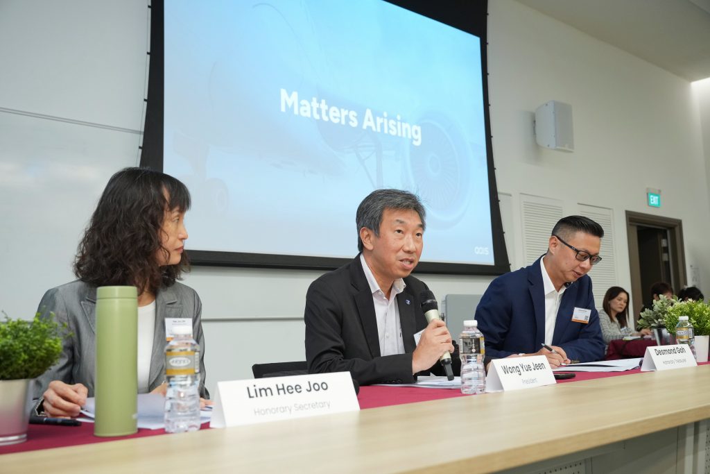 Honorary Secretary Ms Lim Hee Joo presented key milestones from the Annual Report, followed by Honorary Treasurer Mr Desmond Goh’s update on the association’s financial performance for FY2023/24. Members unanimously endorsed both reports.